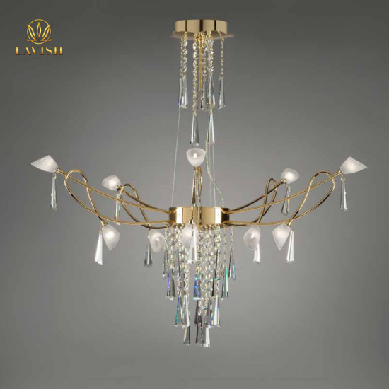 • Chất liệu: Đồng mạ vàng kết hợp với pha lê Asfour.